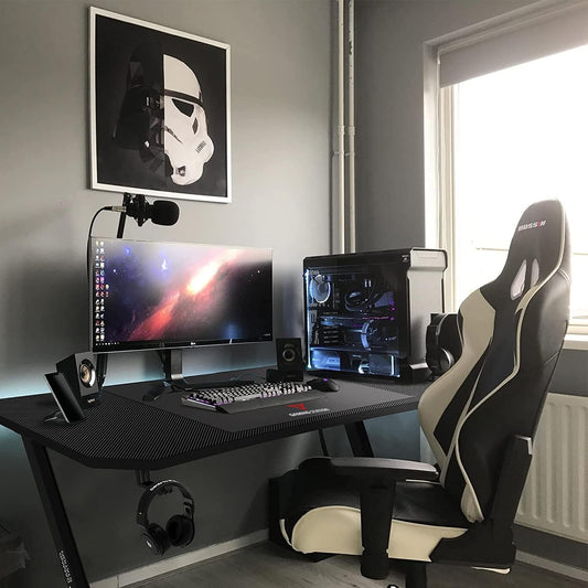 42" Gaming Desk PC Computer Table with LED Lights & Monitor Stand & Hook & Cup Holder in Blue